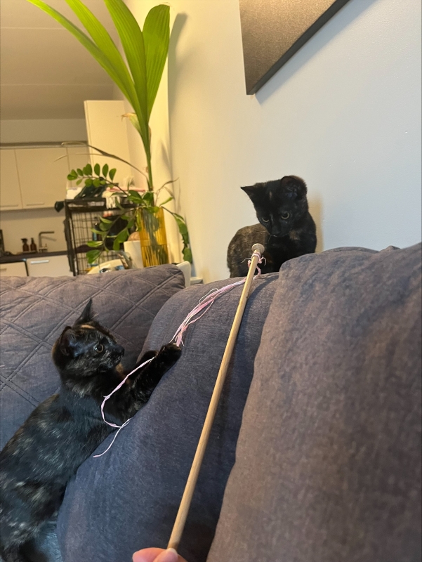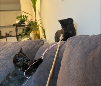 Üle kõige meeldib mõlemale mängida põrkepallidega. Kui tahaksid kiisule kodu pakkuda, siis kliki nupule "soovin seda loomakest", täida ära Pesaleidja küsimustik ja me võtame Sinuga ühendust.