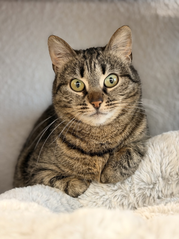 Kiisutüdruk Leona jõudis Pesaleidja kassituppa 2025 aasta aprillikuu keskel Viljandi varjupaigast. Kiisu sünniajaks on pakutud 2024 aasta juunikuud.