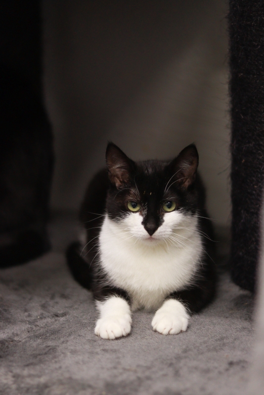 iseloomulikud tunnused: must nina, tilluke kasv (veel!), ümmargused rohekad silmad, valged sokid ja valge manisk