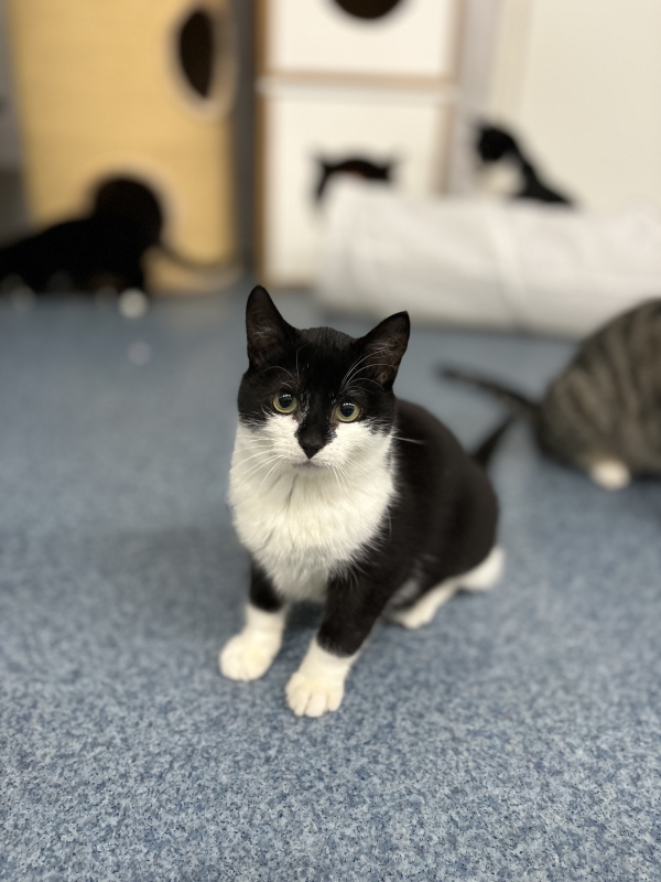 iseloomulikud tunnused: must nina, tilluke kasv (veel!), ümmargused rohekad silmad, valged sokid ja valge manisk