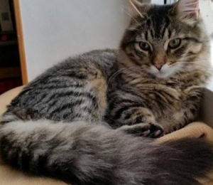 Mõuk on umbes 8-aastane ilus isane triibik. Tal on olnud oma kodu, oma tugitool, kus mõnuleda, perem...